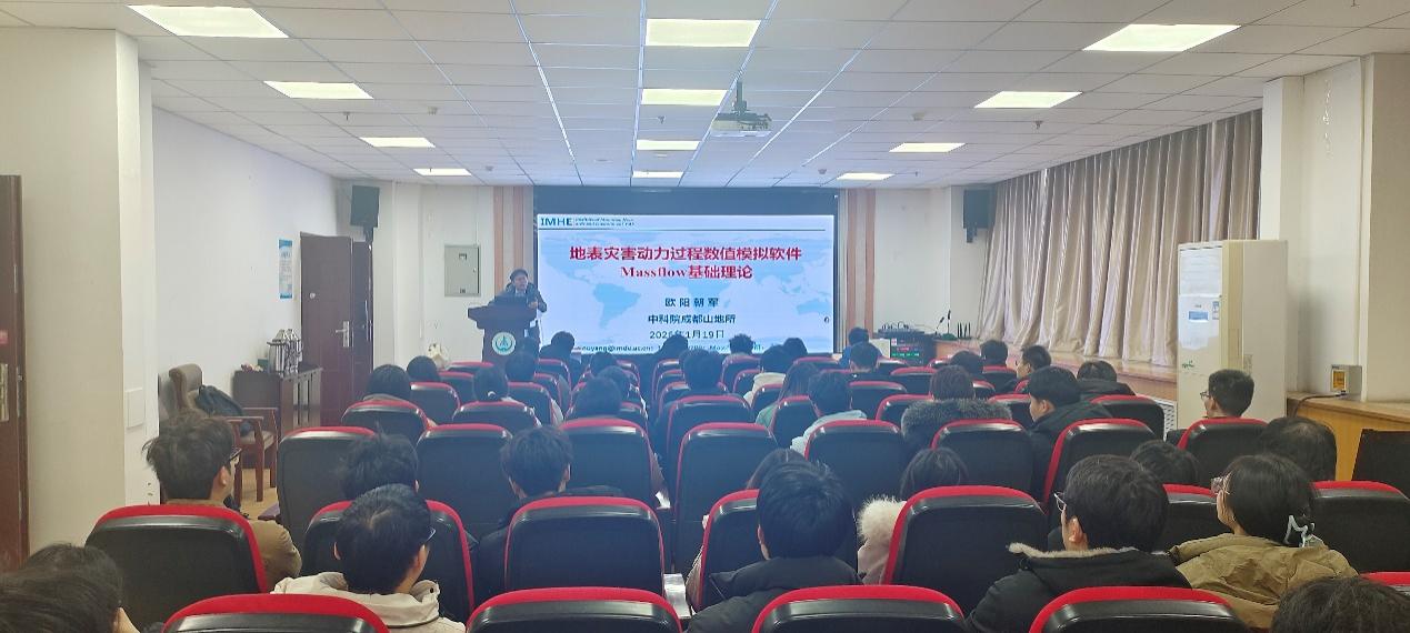 为深化前沿科技与专业教学的融合,提升师生在地表灾害数值模拟领域的科研实践能力,2026年1月19日至20日,地测学院特邀中国科学院成都山地灾害与环境研究所欧阳朝军研究员,在地学大厦313会议室开展为期两天的“地表灾害动力过程数值模拟软件Massflow 3.0专题培训”。地测学院院长黄达教授出席培训,学院青年教师及相关专业100余名研究生踊跃参与,现场学术研讨氛围热烈,培训取得圆满成功。